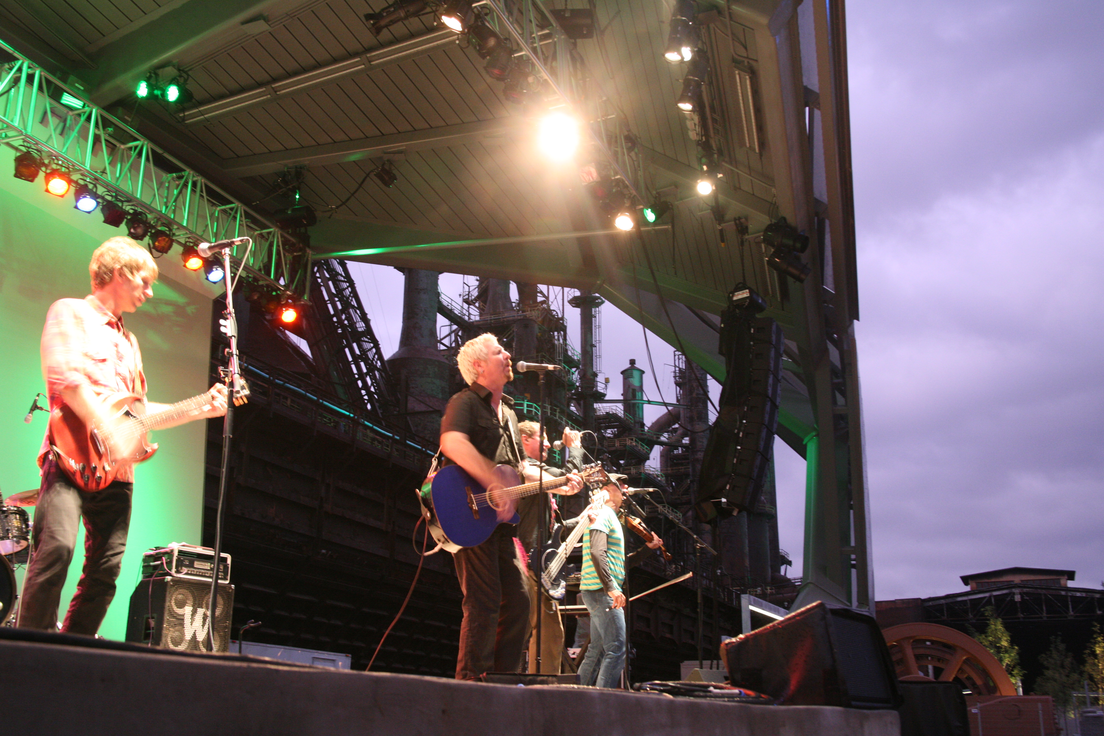 As you know, I am always up for an adventure and live music. Last week, I had both. On Sunday, August 21st The Young Dubliners were playing a concert in Bethlehem, PA. The weather report for the day was thunderstorms, hail, and LOTS of rain. Driving there was an adventure….the show was going on, so we were going! I have to say, I was more frightened by that storm than Hurricane Irene. It was at the Steel Stacks….great place to see a show and here are a few pics to capture the event!