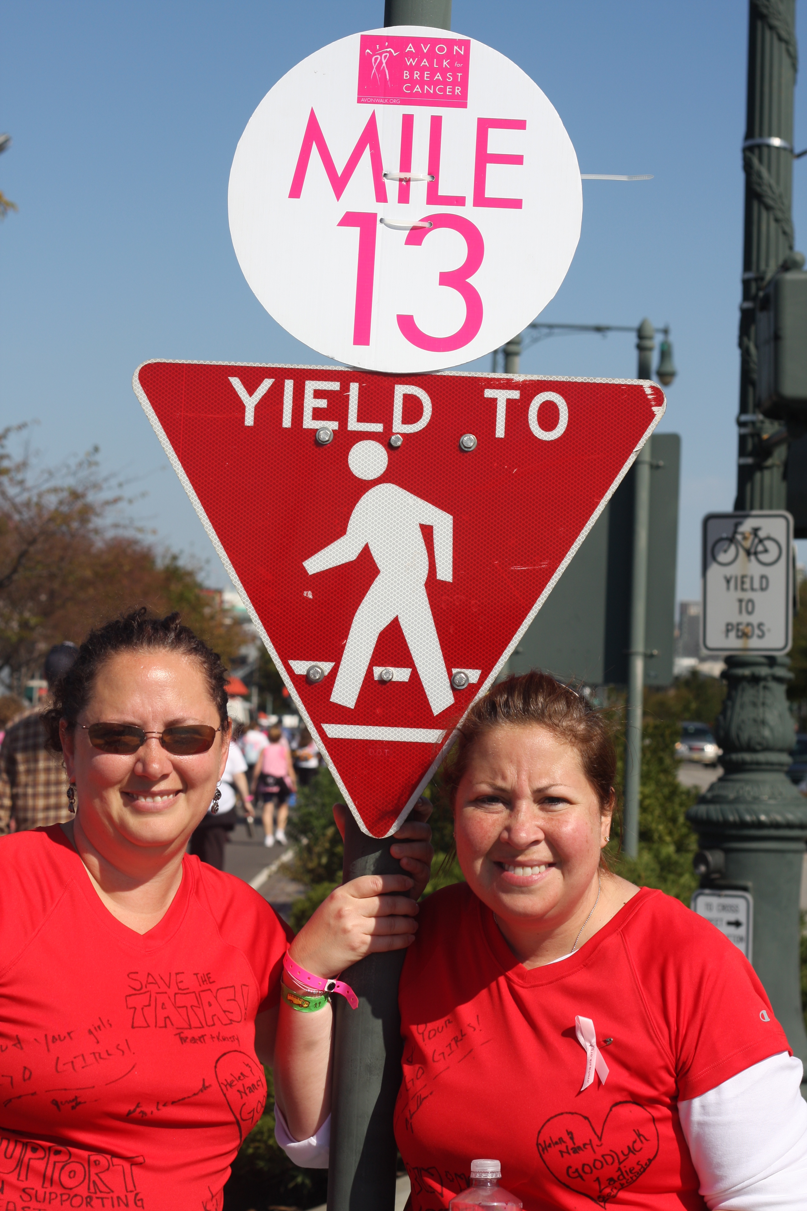 October is Breast Cancer awareness month.  In honor of that, I am blogging about my Avon Walk for Breast Cancer in 2010.  In the spring of 2010 my sister called me to see if I wanted to participate in the Avon Walk.  After we looked at the schedule we decided on the New York walk in October 2010.  Training began and we set out to accomplish the walk.  Summer of 2010 was filled with many training walks…..some were tougher than others.  You learn a ton about yourself when you walk that much!  The walks were a combination of alone and many meeting my sister.  Some of my previous blogs were pictures taken from my training walks:  Valley Forge and Mystic, CT are just a couple of examples.  The Avon walk is a two day walk. First day is 26.2 miles and the second 13.1! Along with training we each were to raise $1,800.   We held a fundraiser in August 2010!  Thanks you to all of our friends who supported us and to the local businesses of Doylestown for their generous donations!  Our team’s name was TEAM LADYBUG!!!