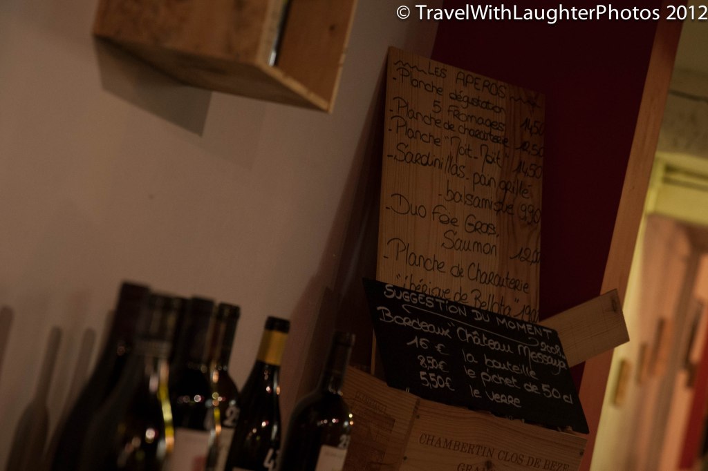 It was such a cool place. We found it walking back from our dinner. Even though we were exhausted, we thought we were on vacation and in Dijon for only for a short time. The wine bar had so much energy and was a blast. It is somewhere we would love to go back to. The “wine list” were bottles displayed around the restaurant and you choose which one you want. The prices were written on the bottle.