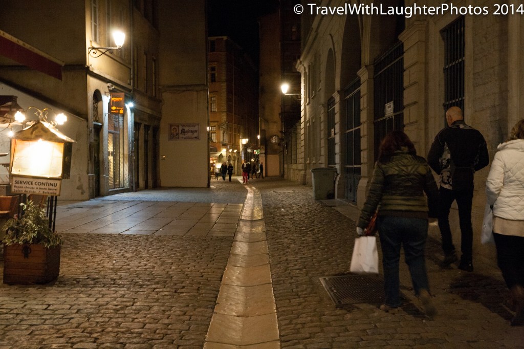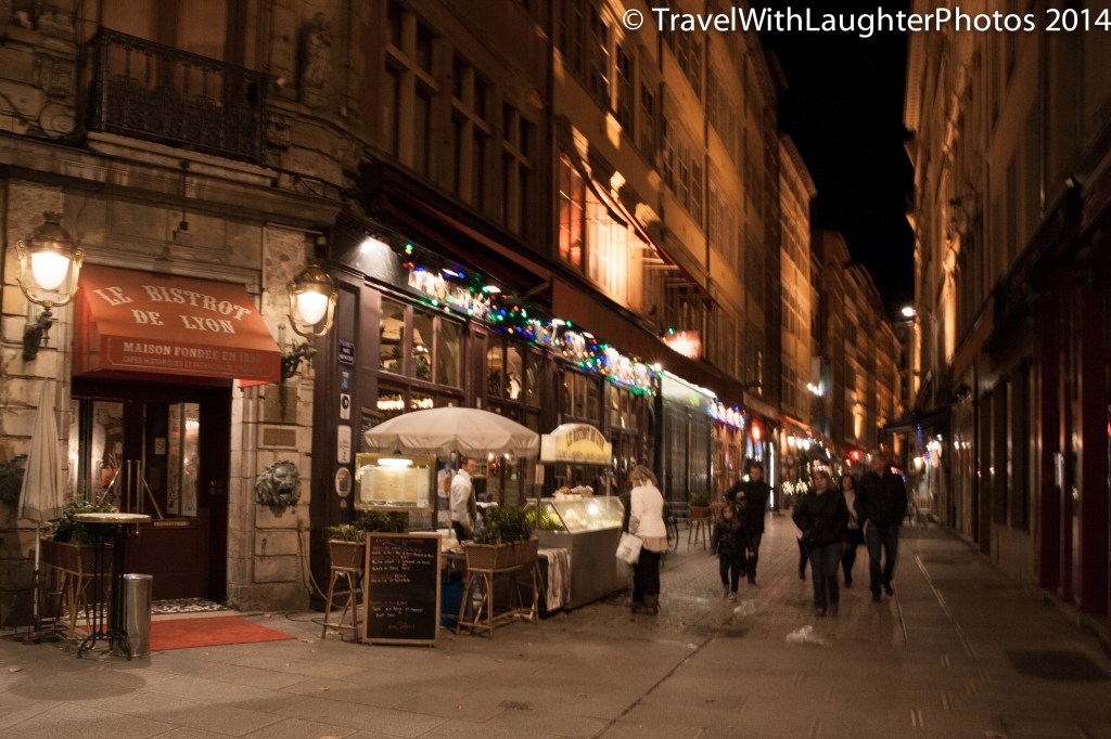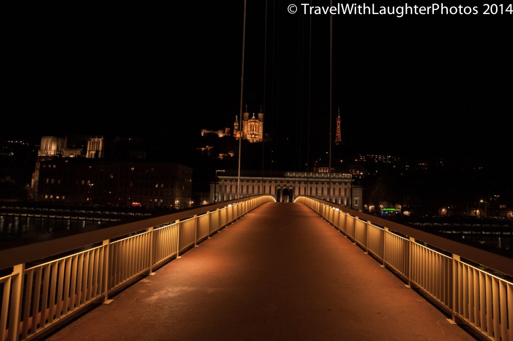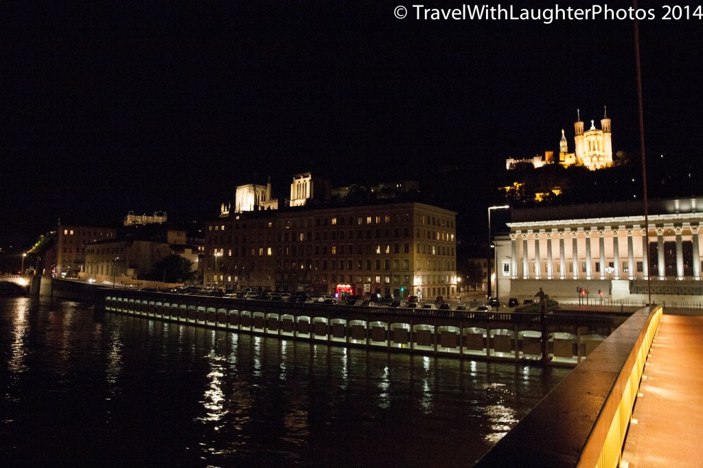 We all had a great day exploring Lyon and after trek to the Basilica we explored the old city. It was filled with great restaurants and bars. I would love to go back to Lyon and explore the city. The people of Lyon are so warm and friendly. We met great people everywhere we went. We were invited for an authentic Lyonnaise meal at a restaurant, but we weren’t going to be in town the next night. Lyonnaise potatoes were delish! I am going to find a recipe and make them. After our visits to a couple of pubs, we made out way across the bridge to dinner. I was able to snap some pictures of the city at night!