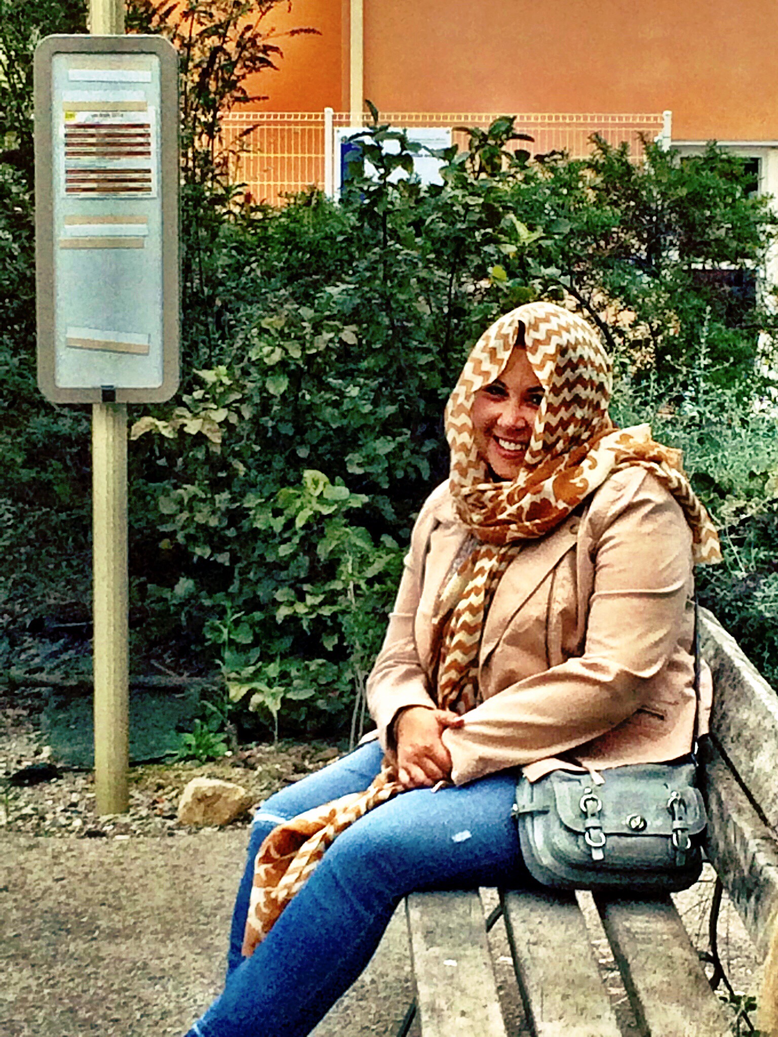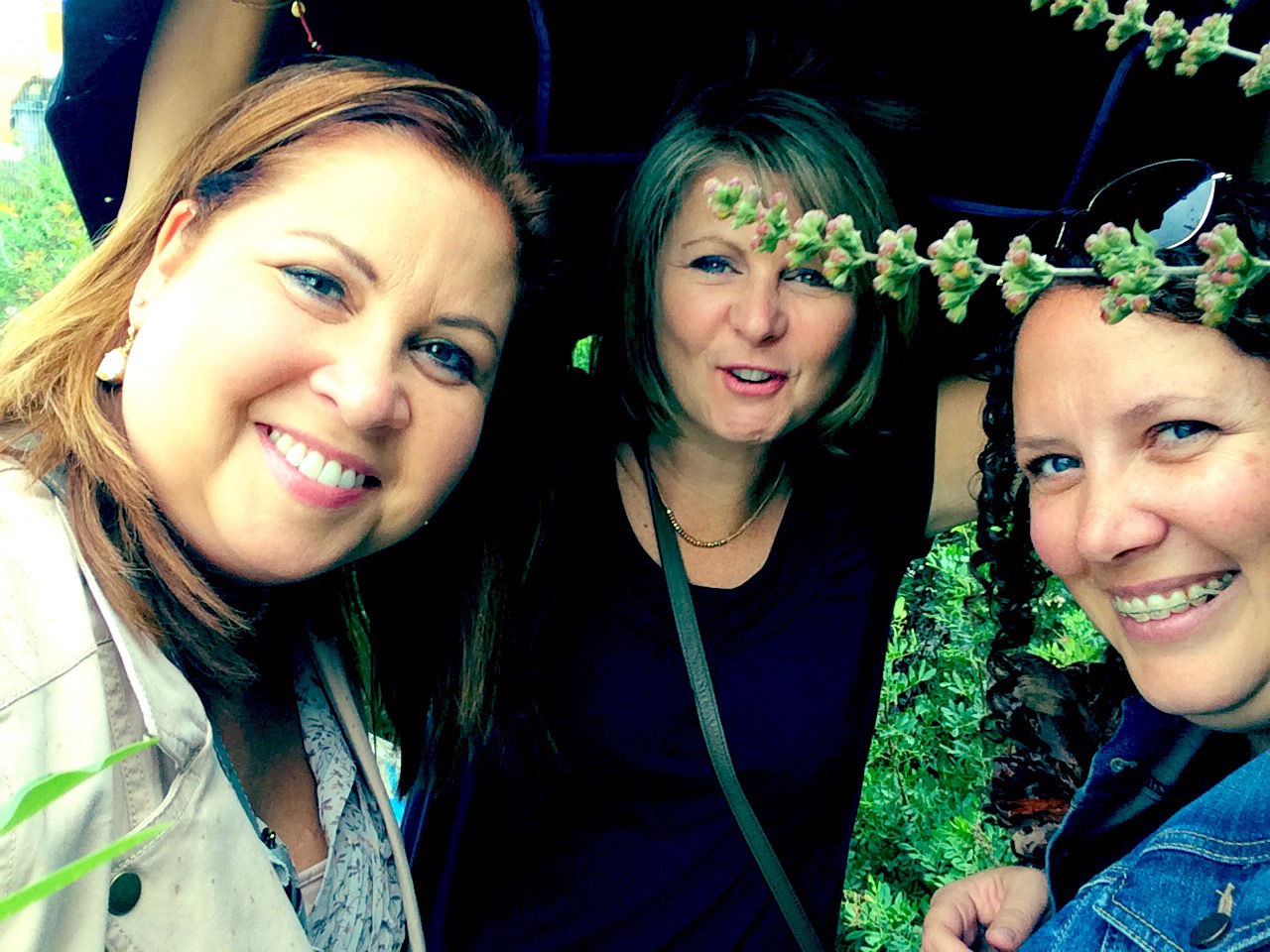 After lunch we decided to visit some tasting rooms in Frontignan. We got the local bus to head there. We thought that we would see a sign that said Frontignan on one of the stops. Nope. Mental note: take a picture of the bus route with stops. We realized too late that we passed our stop. So, we got off at the next stop. It was in the middle of no where. We were laughing and as soon as we got off the bus it started raining. We got on another bus and headed back to Montpillier! It was a fun adventure. You will see my sister using her scarf as an “umbrella” and us standing under a tree.