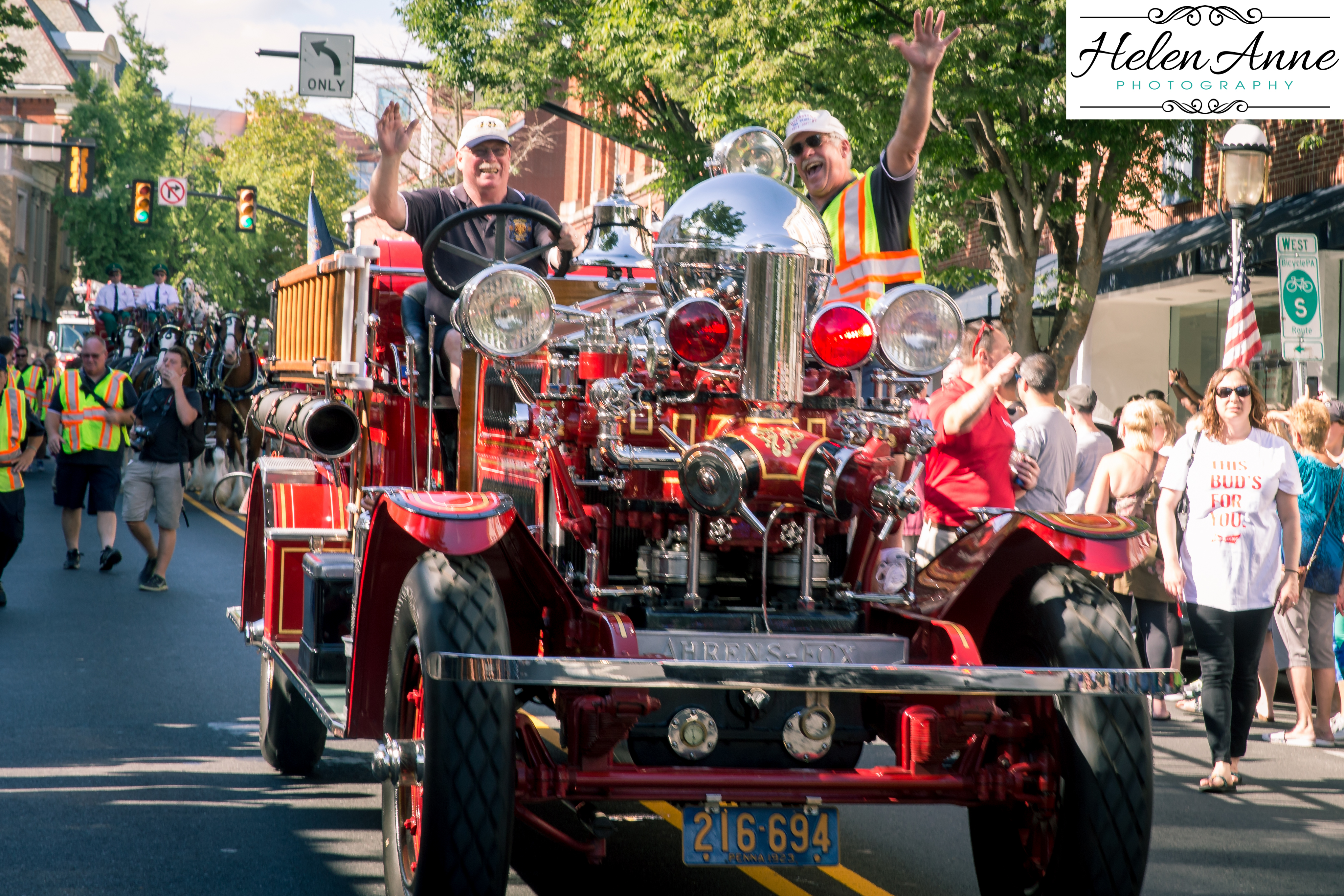 The crowds amazed me and Doylestown came out to support the event. Here are some photos of the Clydesdales coming down Main Street: