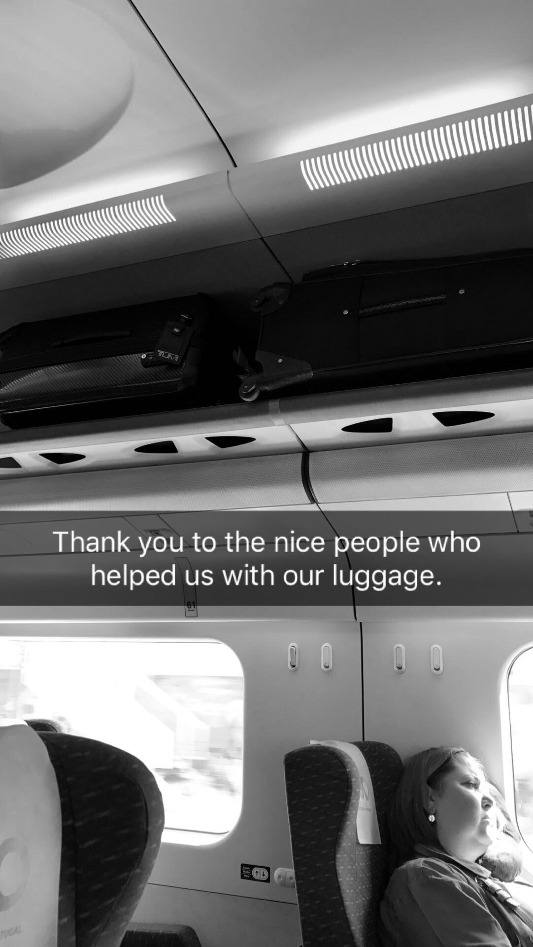 Also, we have met some nice Canadians who helped us put our luggage on the rack above us!