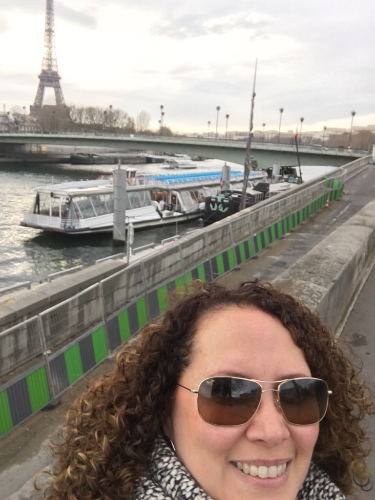 Christmas Day in Paris! My solo trip to Paris was filled with things I have never done in Paris. As I researched what to do on Christmas Day, I had read that a lot of the restaurants and places would be closed. (Side note- there was more open than I expected) I decided to see if the boat tours of the Seine were operating on Christmas Day. Six years ago, when we started our sister trips, I discovered a great blog: The Weekend in Paris. Since then I have used it as a source for researching my Parisian adventures. Priscilla recommends the Bateaux-Mouches for boat cruises on the Seine. The tour I chose was the Christmas lunch cruise. Traveling solo is very empowering. I admit is was a little uncomfortable in the beginning to be alone on the cruise. I settled in and enjoyed myself. I have learned that if I want to do something, DO IT!
