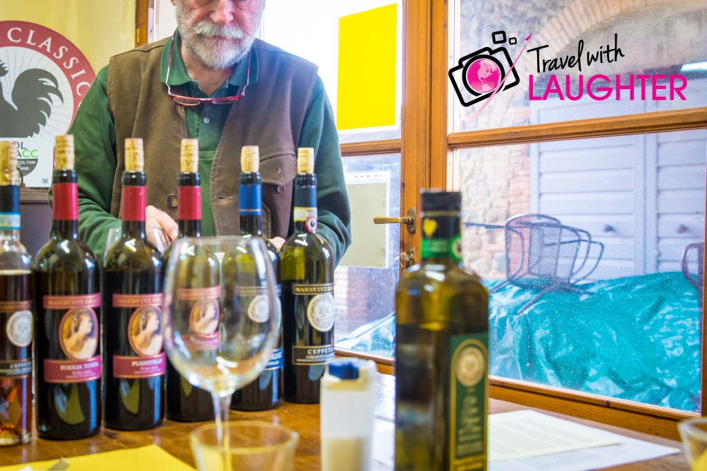 Our next stop after cheese tasting was a visit to a local winery. We had a great visit and lunch at Mannucci Droandi. We had a delicious lunch with Tuscan goodies. We loved visiting during olive harvesting season and tasted their first pressing. Not only were they wine producers, but had an organic farm for their food. We were blessed to meet the owners, it was special place and day. Nothing beats the homemade eggplant parmigiana by Maria.