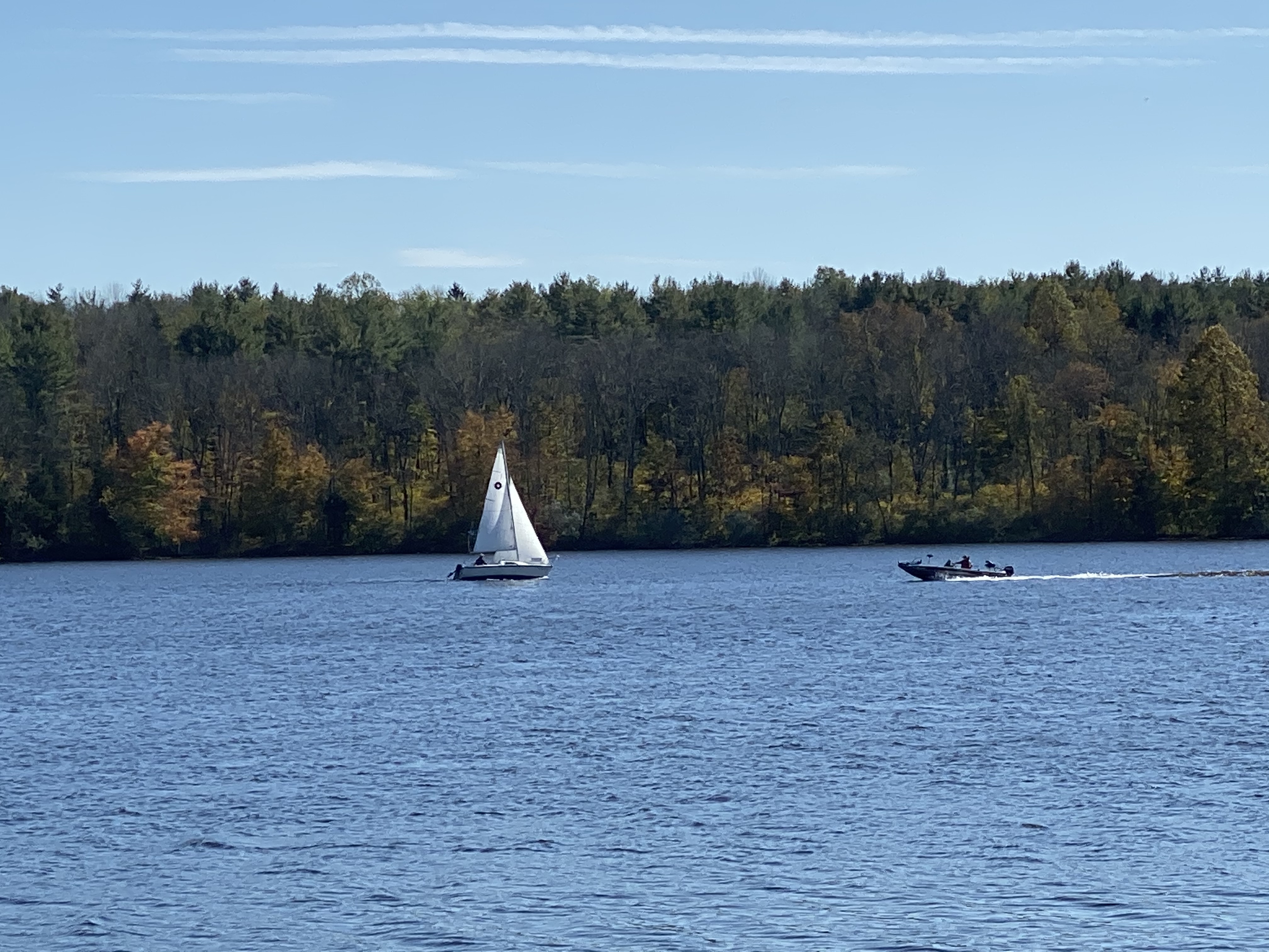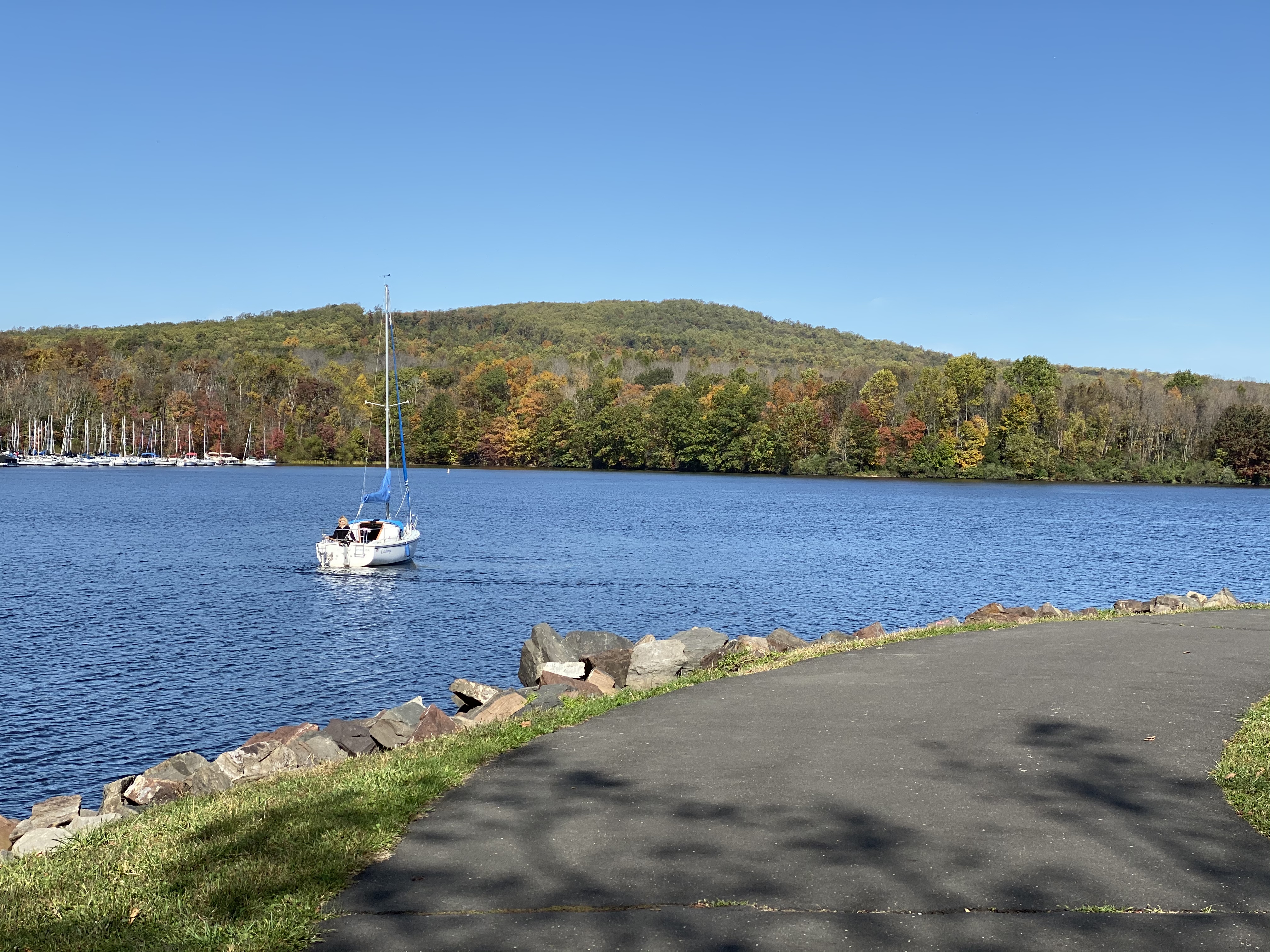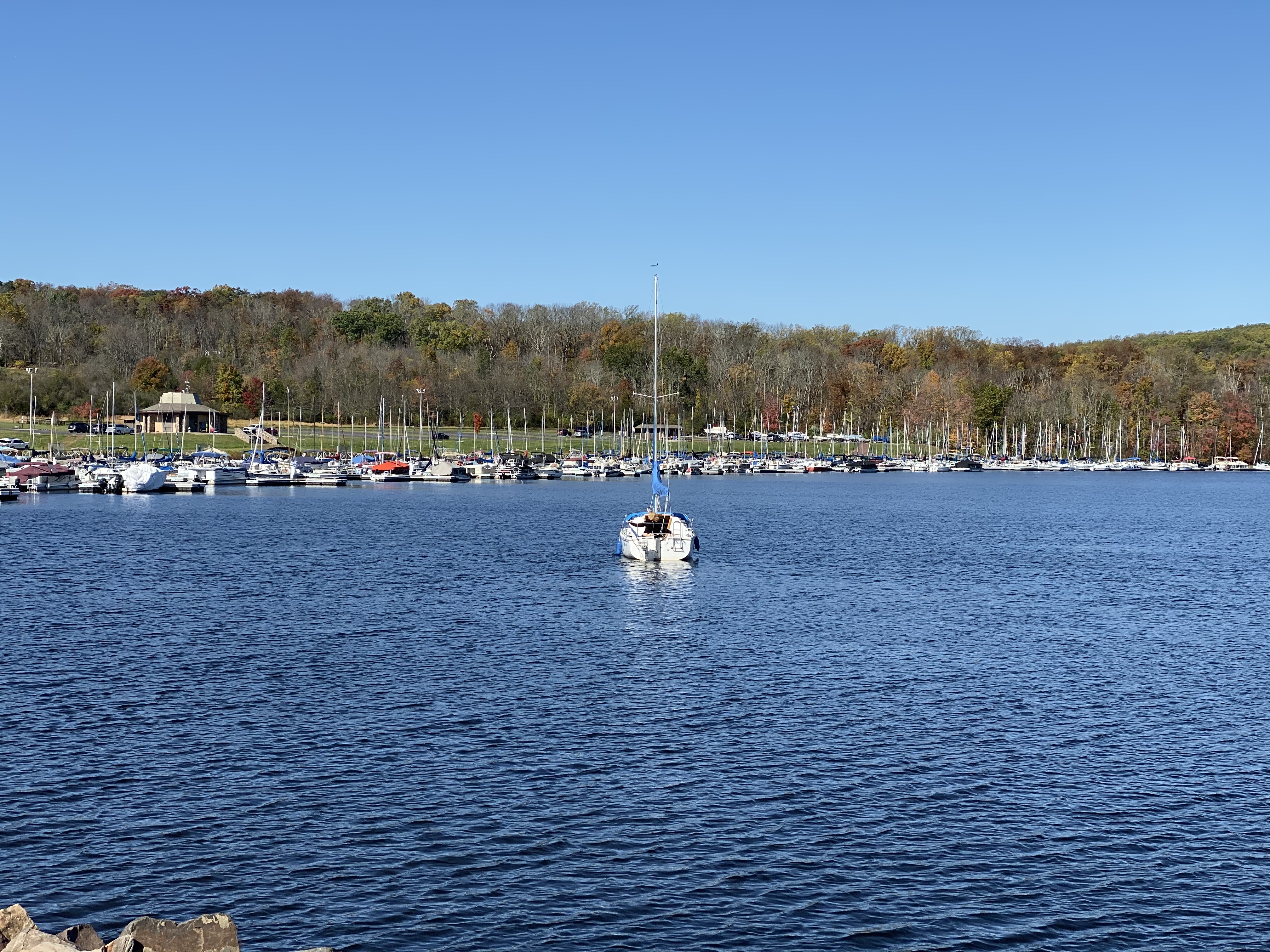 I took a drive to Lake Nockamixon with my parents, which is somewhere that we have started to go recently. Before they moved here, I had only visited the park once. Crazy, I know! The marina area was busy with boaters bringing their boats in for the winter. These are photos taken with an iPhone 11. It is amazing how good the photos from a cell phone are now. Thanks Dad for letting me use your phone! 🙂