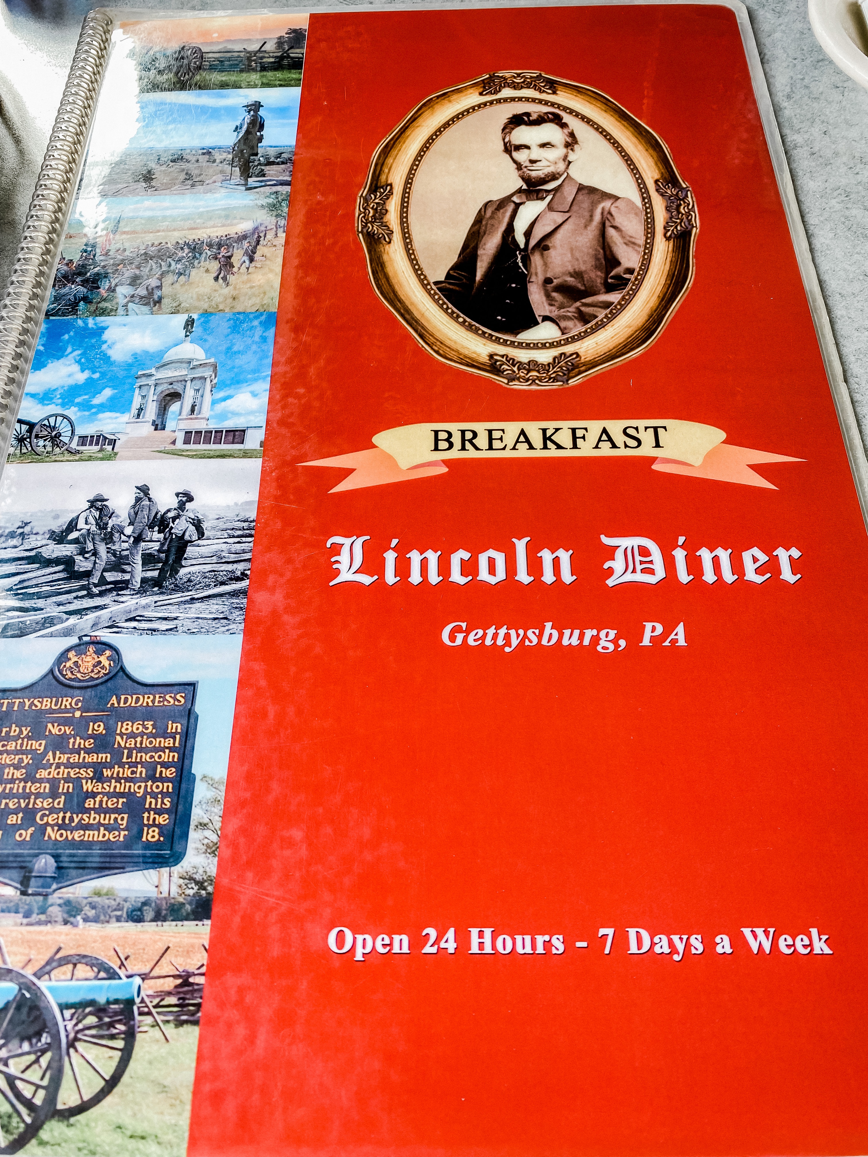 After I took photos of downtown Gettysburg, we found a place for breakfast and it was the Lincoln Diner. It is located across the street from the Gettysburg train station. It was a yummy breakfast.