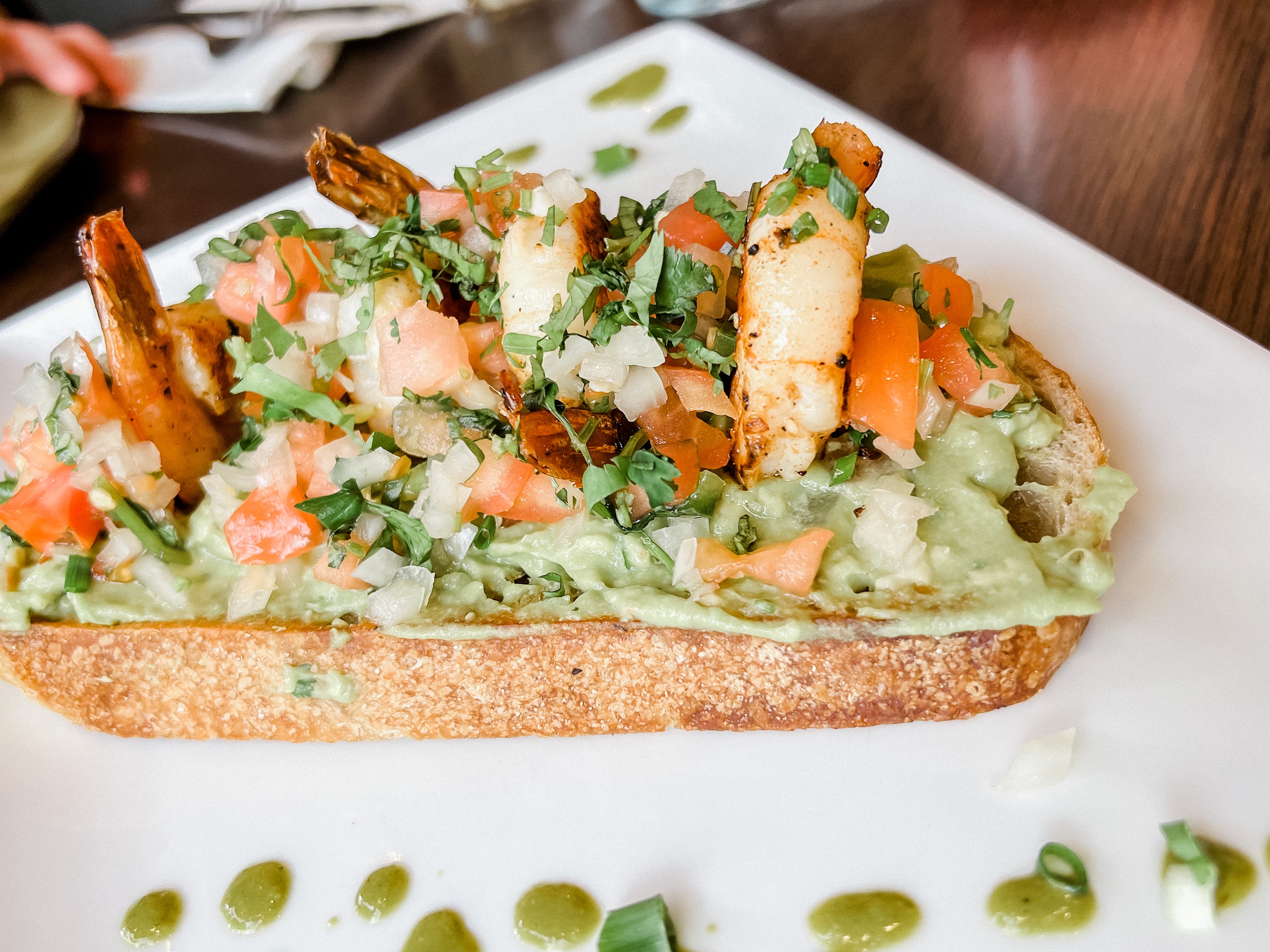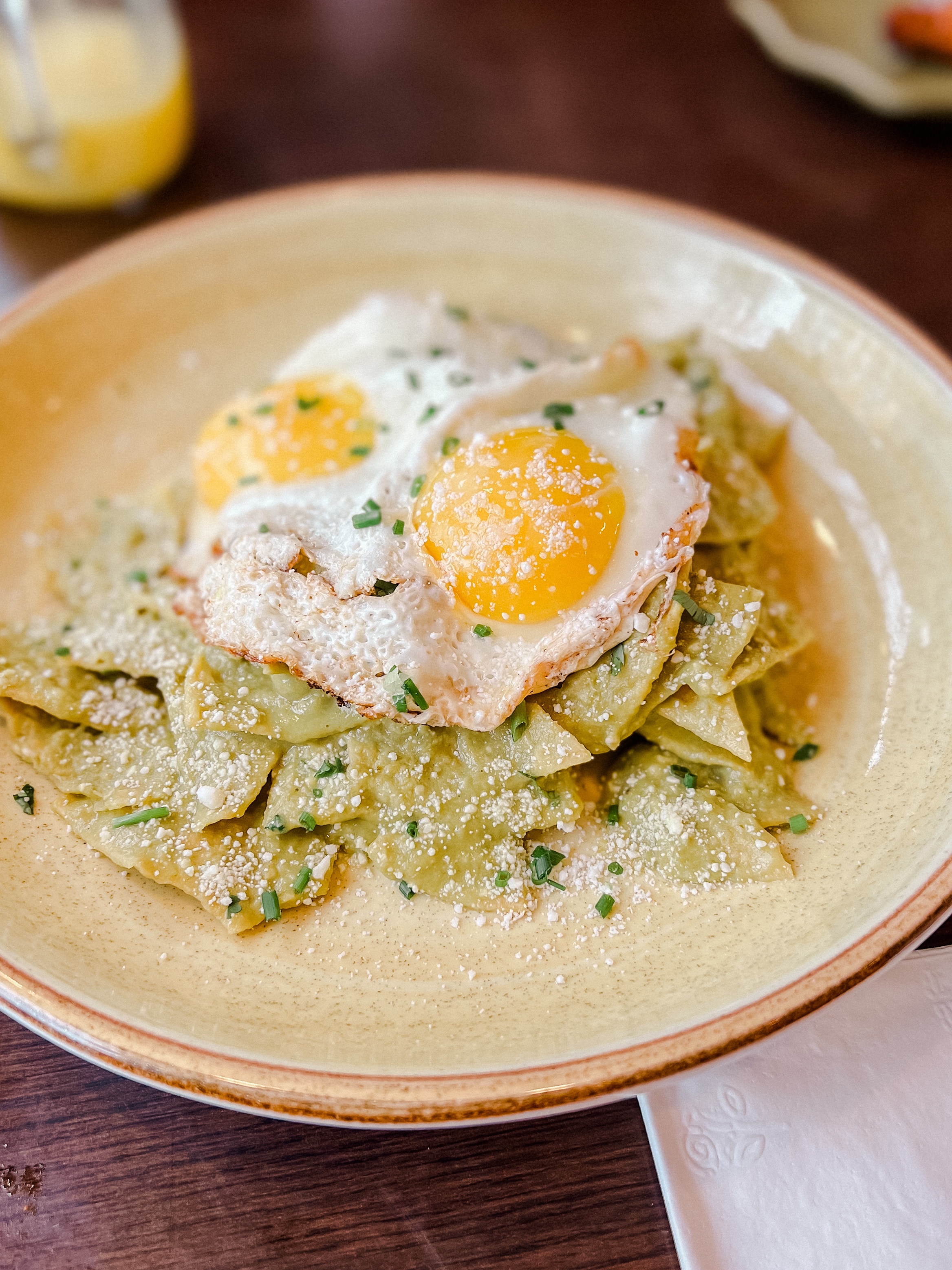 There were so many yummy choices on the menu. We then had their Aguacate toast with chipotle lime shrimp, which was on Nord Bread. It is made locally and I am able to eat because it has a low gluten. We also enjoyed plantains and Chilaquiles con huevo.