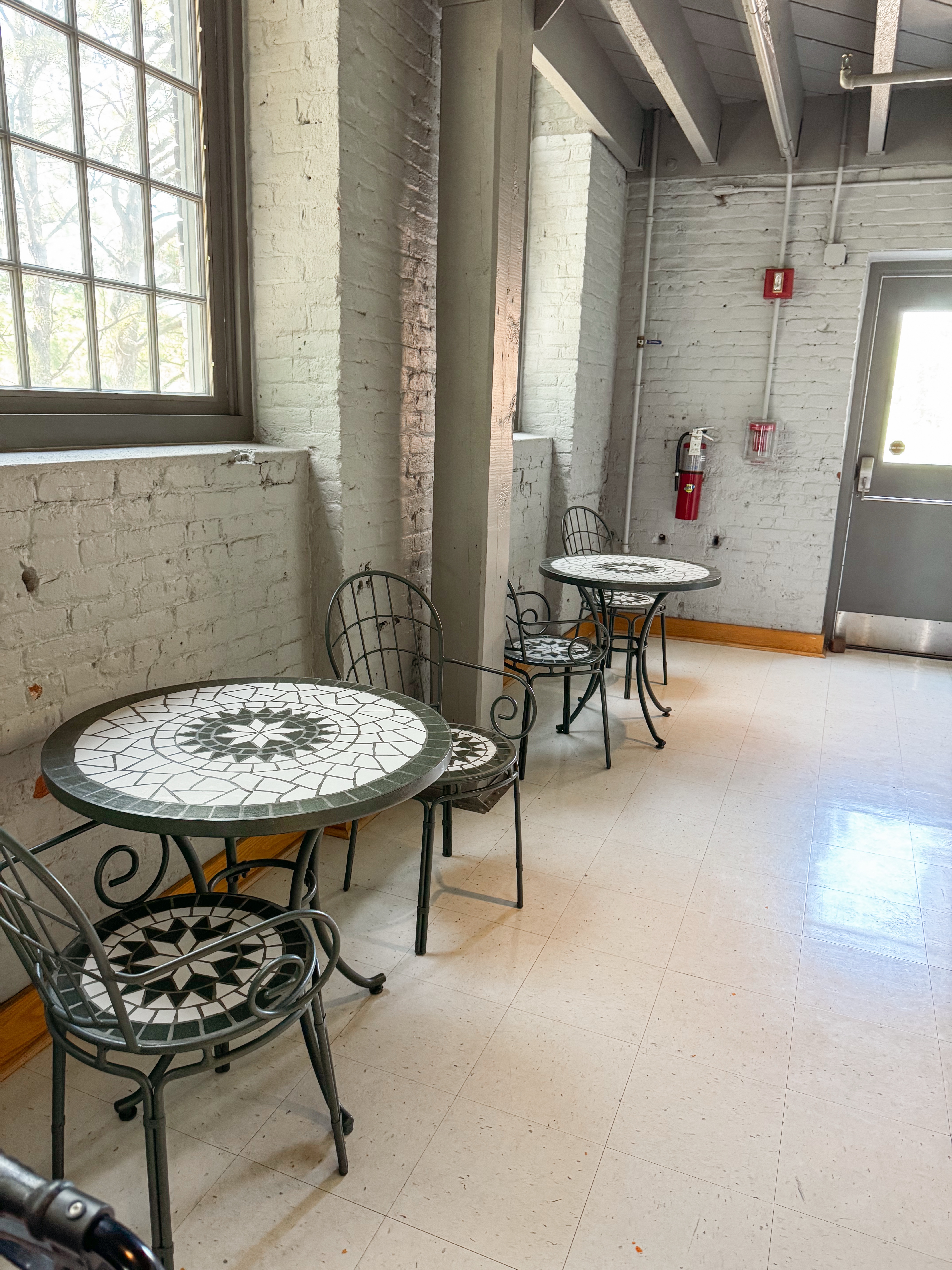 On our way to a charming house by a lake in Long Eddy, NY, we decided to stop and explore the historic site, eager to learn about the steam locomotives that once powered the nation’s industries. After we arrived at the historic site, I looked for a bathroom that was easily accessible for my parents. Unfortunately, the visitor center is under construction, so the bathrooms that are open are a little bit of a walk for them, making me realize how important it is to consider accessibility in all the places we visit. After you have traveled with those who aren’t as mobile, you begin to truly understand how much we overlook the needs of those with mobility issues. When I saw that the Electric City Trolley Station and Museum was located on the opposite side of the parking lot, I decided to see if they had a bathroom to use, hoping for a more convenient option. To my delight, they not only had restroom facilities but also a perfect setup for us to enjoy lunch amid the historical atmosphere. Located outside of the bathrooms are two charming bistro tables, providing a lovely spot to sit and take in the surroundings. Before touring the museum, we were able to eat lunch.