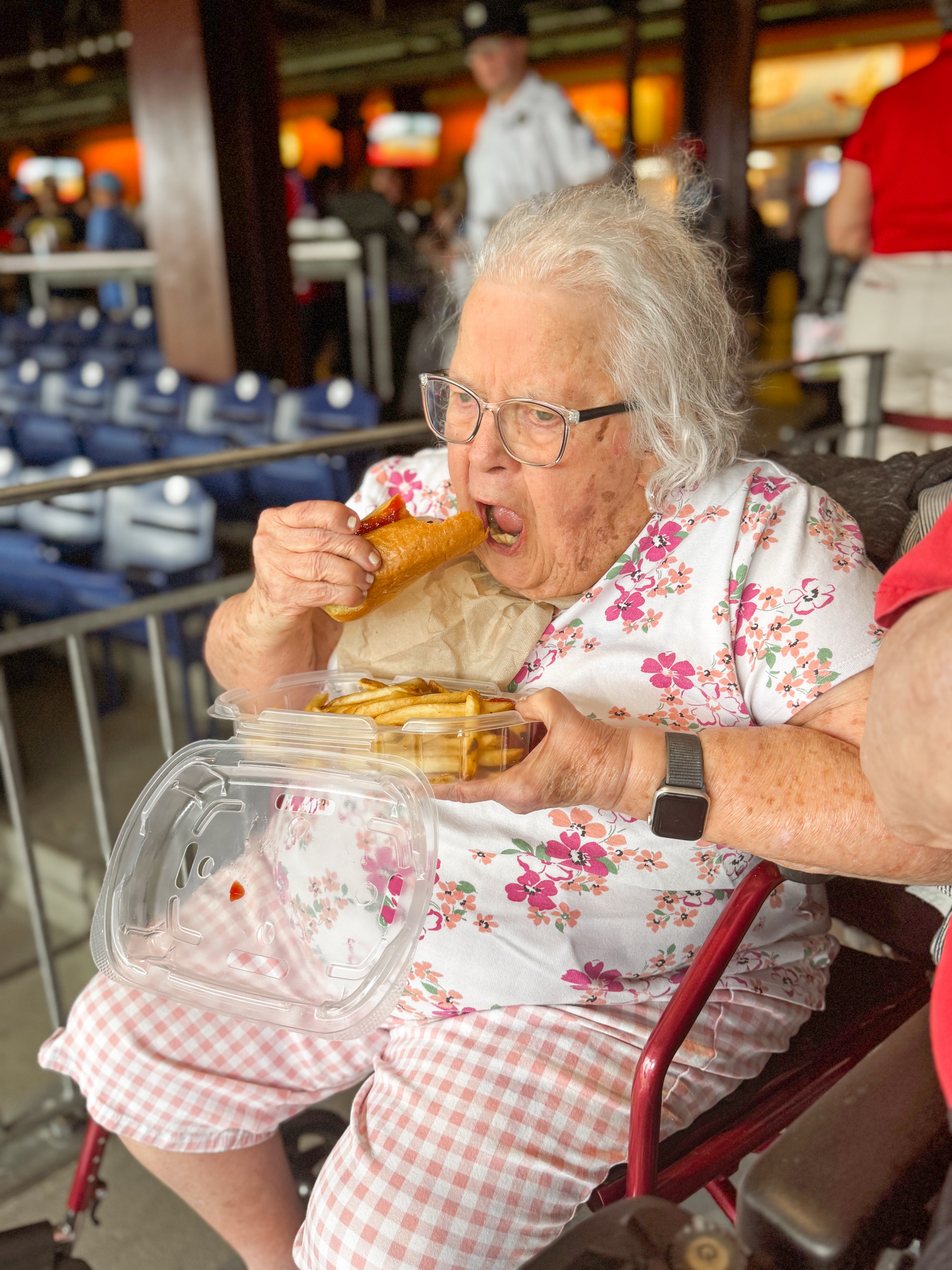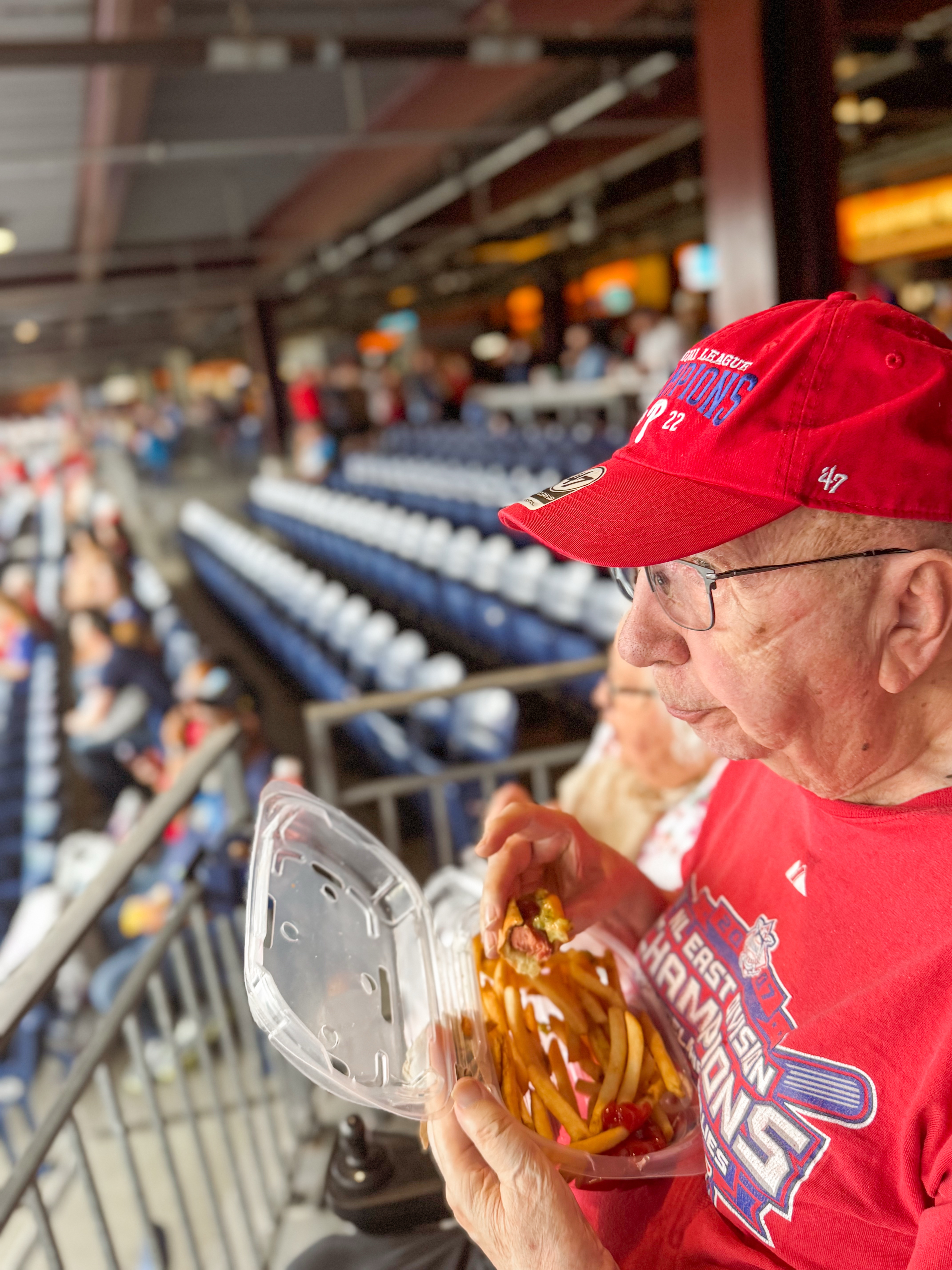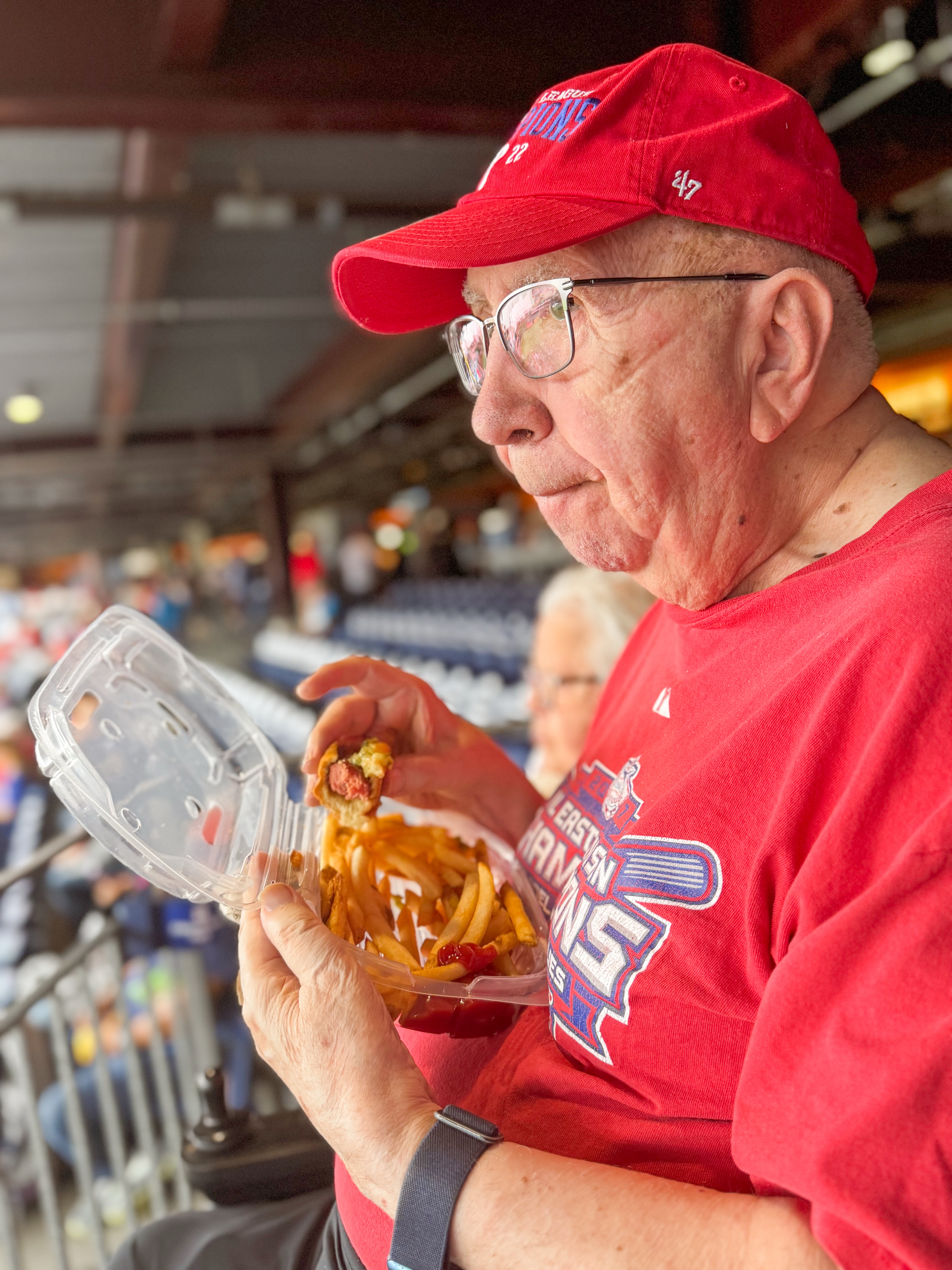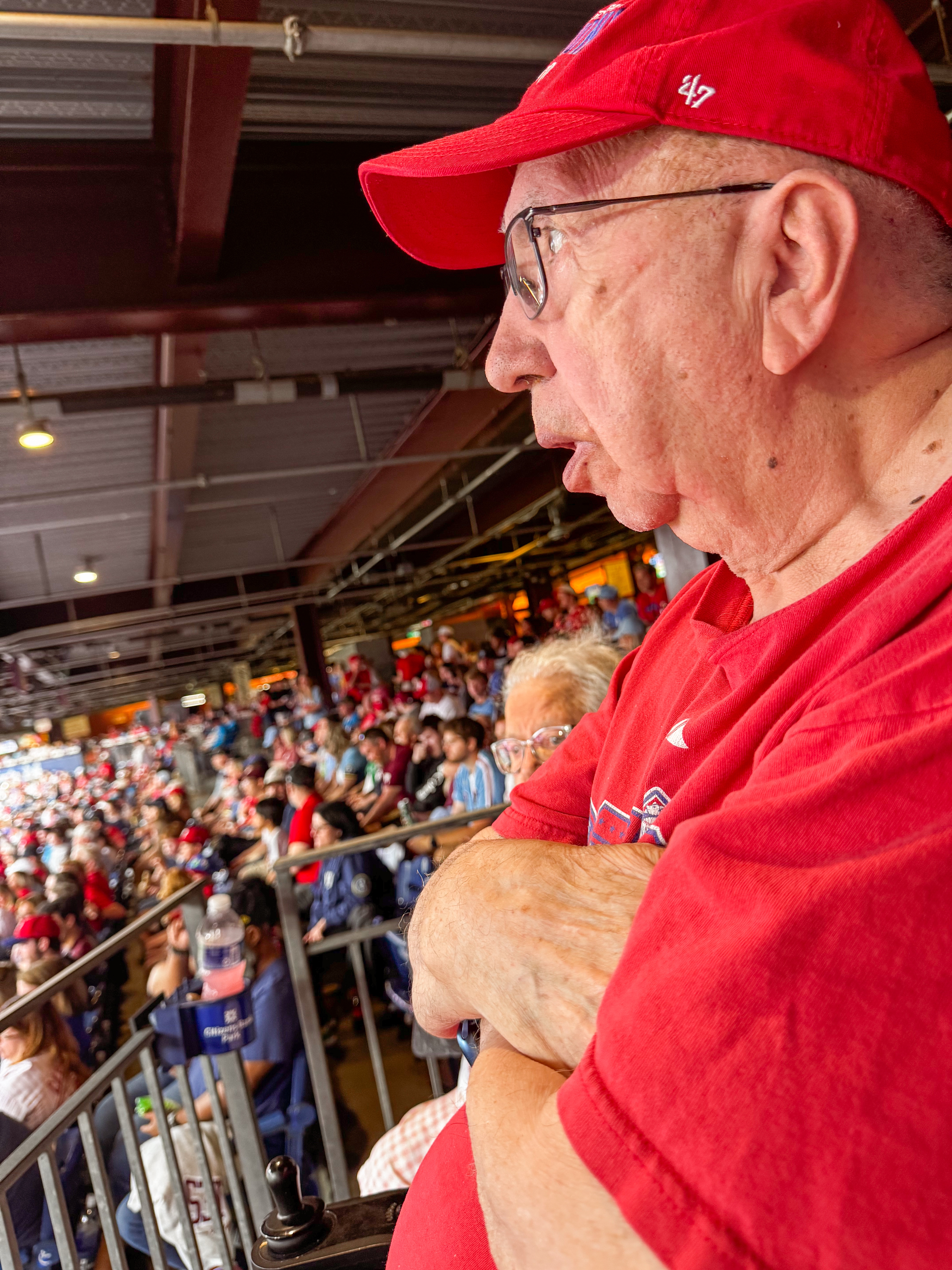 It wasn’t planned, but we went to the Phillies game for my Dad’s 88th Birthday on May 30th. The morning of his birthday, I had asked him what he wanted to do, and he mentioned doing something we hadn’t done before, which sparked a sense of excitement in me. After a bit of back and forth, I presented a few options, but nothing seemed to resonate with him. Suddenly, I remembered how much he used to enjoy baseball games, and I thought about how the atmosphere, the cheers of the crowd, and the thrill of watching his beloved team play could create a memorable experience. So, after some quick research, I suggested the idea of going to the Phillies game. At first, he seemed surprised, his eyes lit up with enthusiasm, and I could tell that this would be a birthday he would cherish. The plan came together swiftly, and before we knew it, we were heading to the stadium, ready to celebrate this special milestone in a way that was both unexpected and filled with joy.