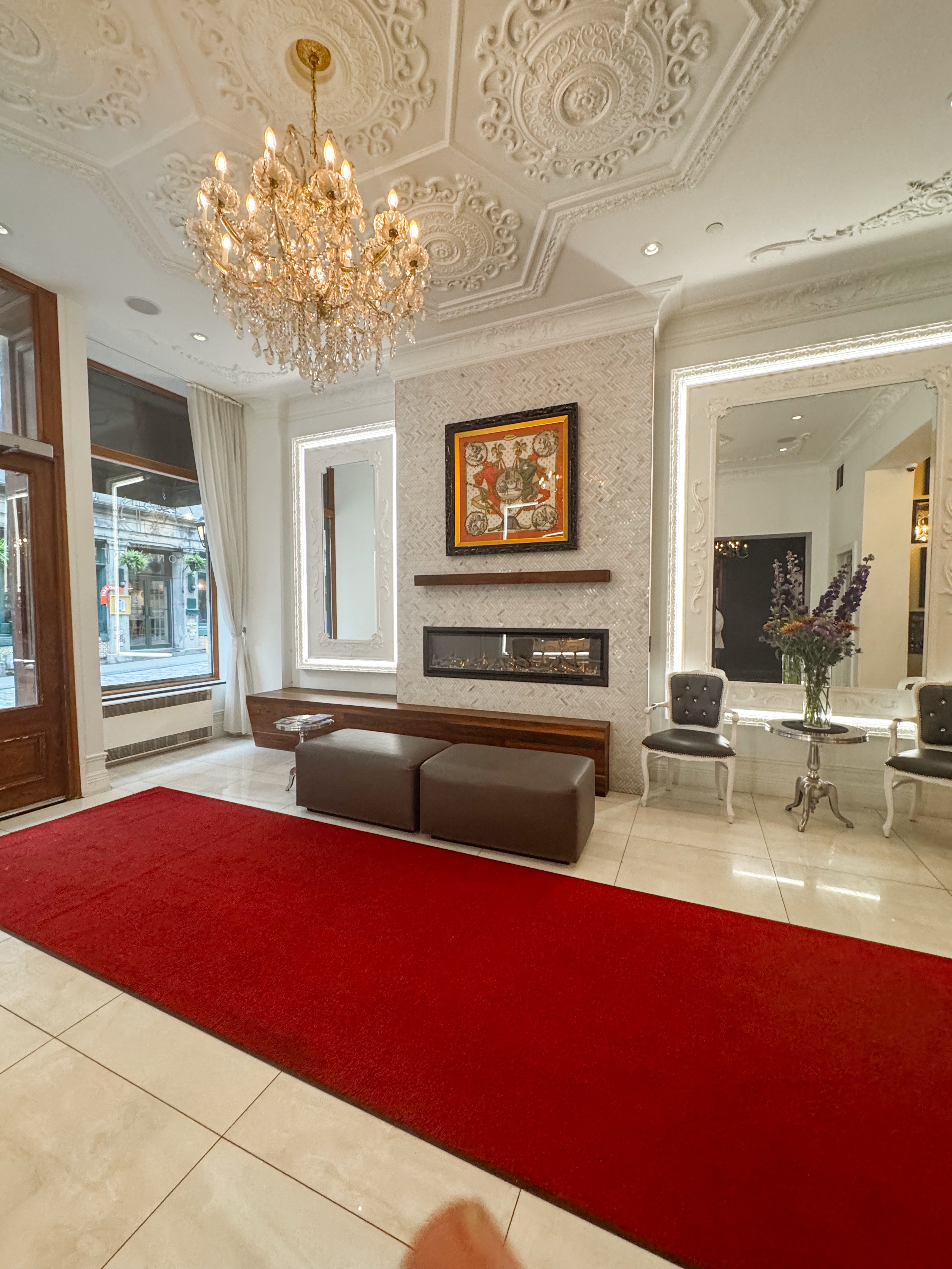 After visiting the breathtaking light show at Notre-Dame Basilica of Montreal, I found myself with some time to spare before dinner. Eager to unwind, I stopped into the charming Hôtel Bonaparte for a glass of wine. As I settled in, I couldn’t help but admire the menu; the food looked incredibly yummy, and those around me were relishing every bite of their meals. The staff, attentive and friendly, provided exceptional service, ensuring that every guest felt welcome and well taken care of. The dining room was beautifully decorated, creating a cozy yet elegant atmosphere that invited lingering conversations, while the lobby, equally stunning, exuded a sense of history and sophistication, making me feel like I was a part of something truly special.