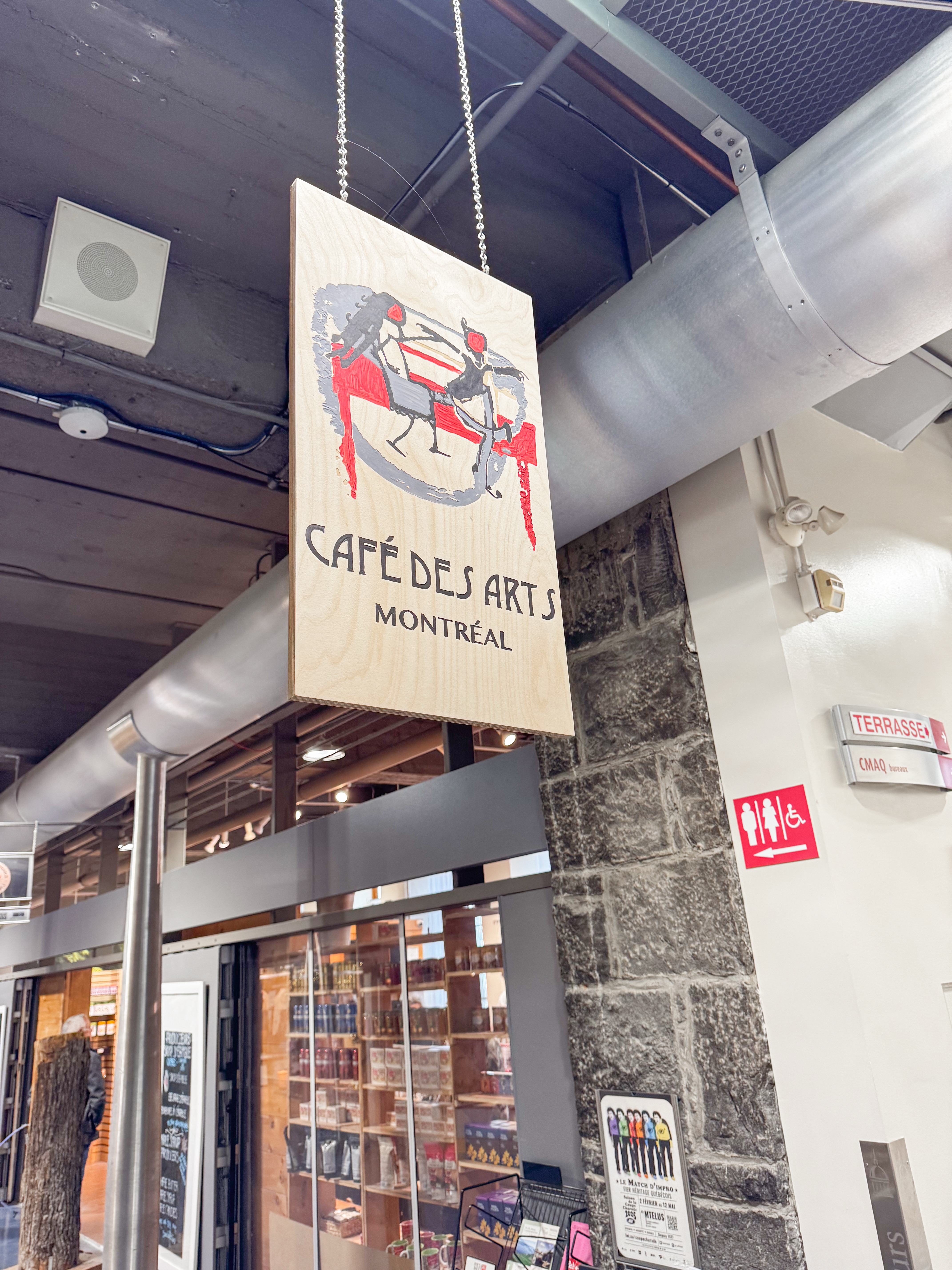 I was walking through Bonsecours Market, which is located in Old Montreal, a historic area rich in culture and charm. The market buzzed with activity, with various restaurants and shops to explore, each offering unique local products and delicious cuisine. I had just eaten lunch at a nearby bistro, so I didn’t eat at Café des Arts, though the atmosphere was incredibly inviting. This café is a delightful combination of art and food, where local artists showcase their work while patrons enjoy their meals. The food looked yummy, beautifully presented, and I loved the overall vibe, with the aroma of freshly brewed coffee filling the air, making it a perfect spot to unwind and soak in the artful surroundings.