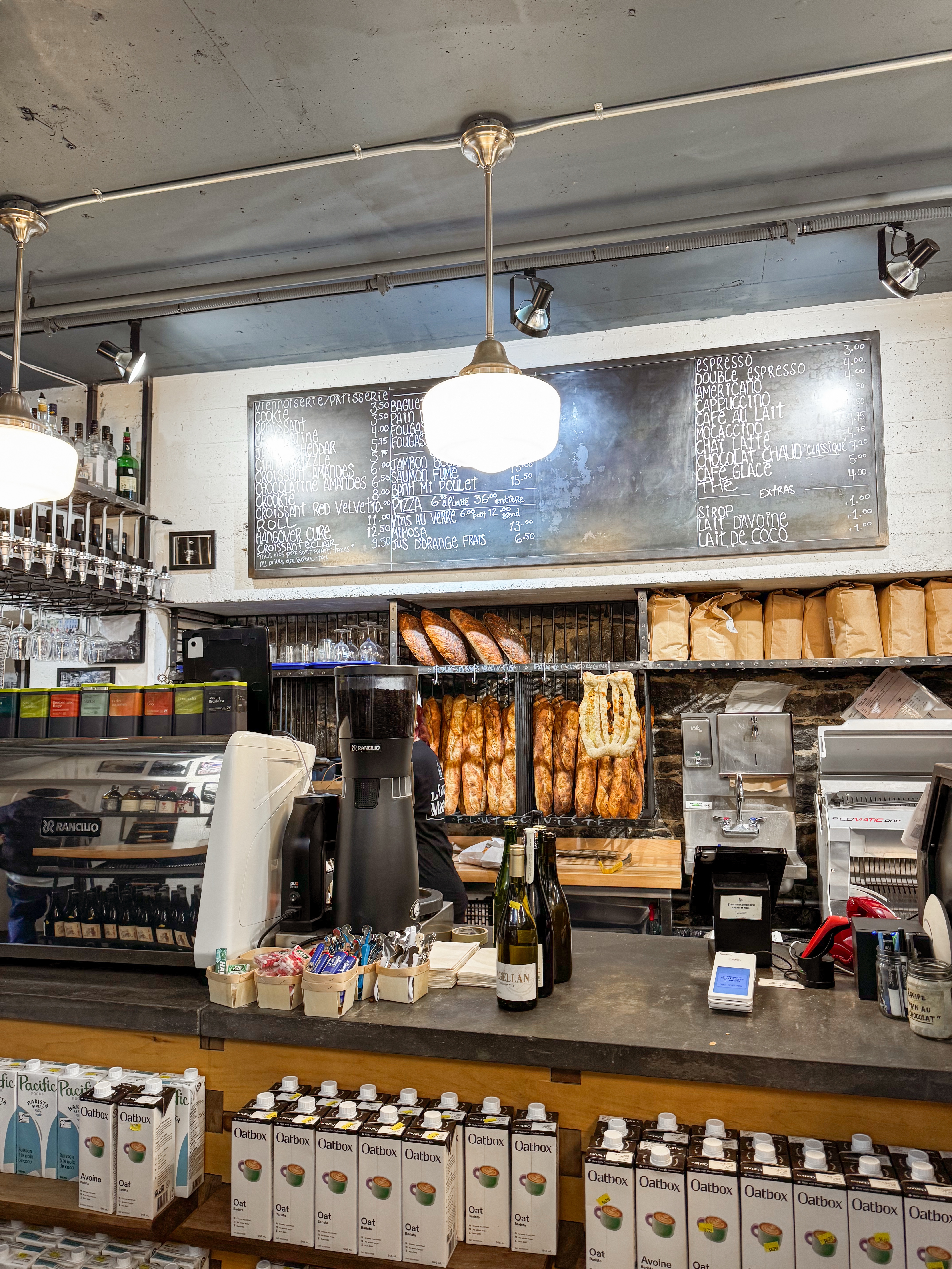As I walked out of Bonsecours Market, I noticed La Cave À Manger Boulangerie and was intrigued by its charming façade and inviting ambiance. There is seating outside at street level, with the food area down a set of stairs that adds a sense of discovery. I didn’t eat here either, but loved the atmosphere that enveloped the space, making it a perfect spot for casual gatherings. The establishment beautifully combines the elements of a cozy wine bar and a traditional boulangerie. The inside felt like a quaint French Boulangerie, where the decor evokes a sense of nostalgia and comfort. It was chilly and rainy when I visited, so no one was enjoying their outside seating, which only added to the cozy indoor vibe where patrons could escape the dreary weather. The bustling yet relaxed environment, filled with the soft clinking of glasses and laughter, will definitely keep La Cave À Manger Boulangerie on my list to visit for a future experience.