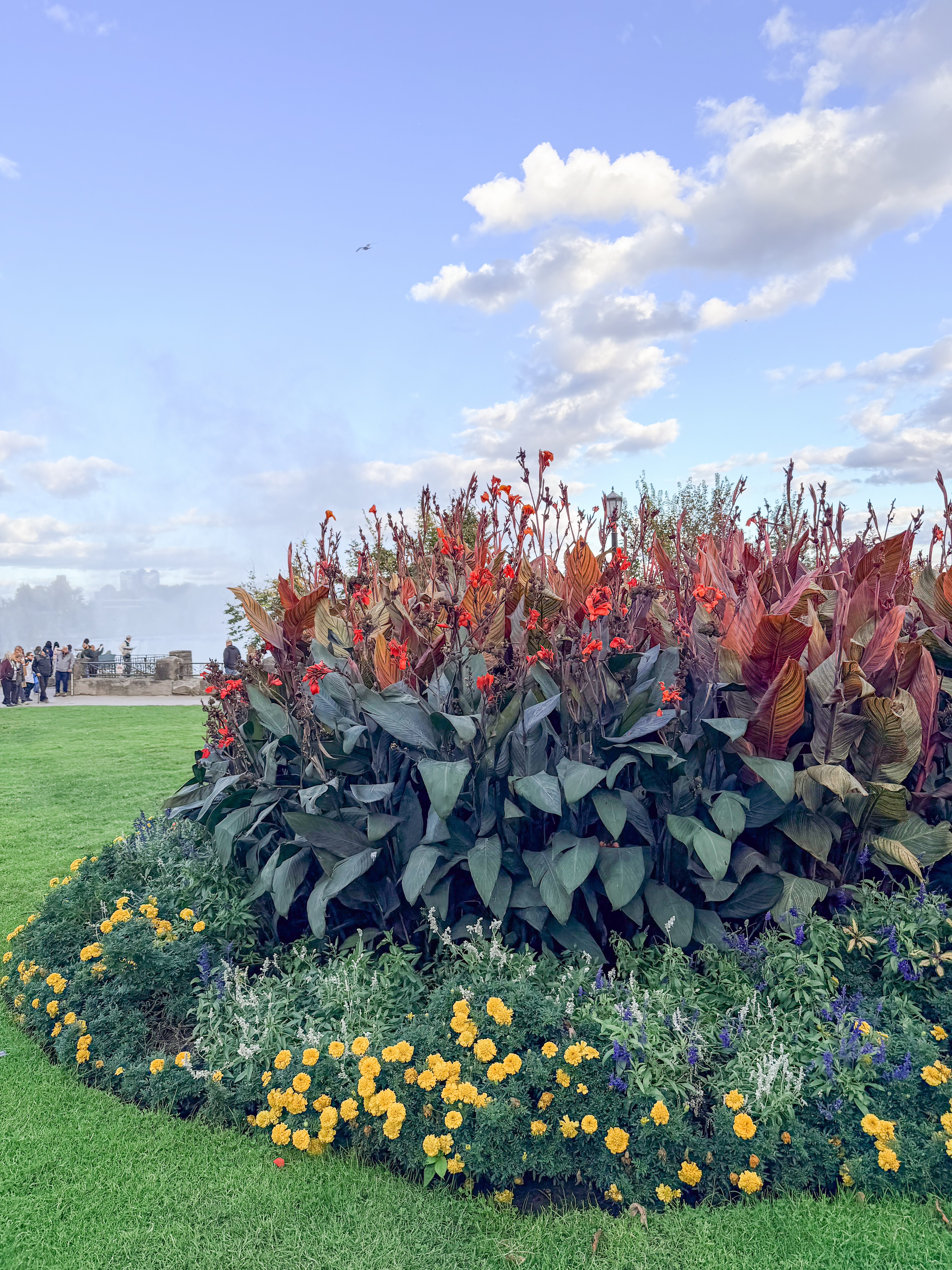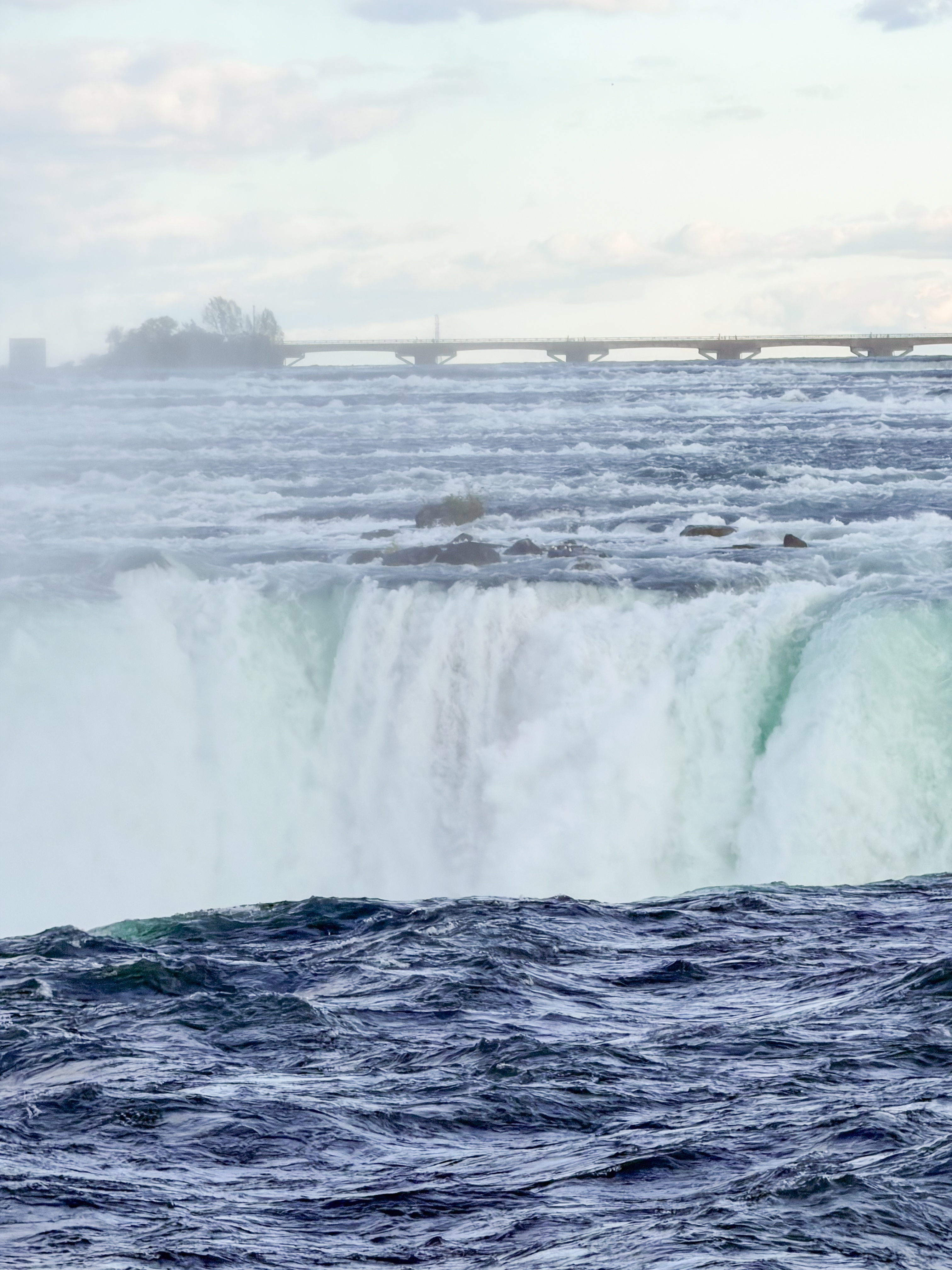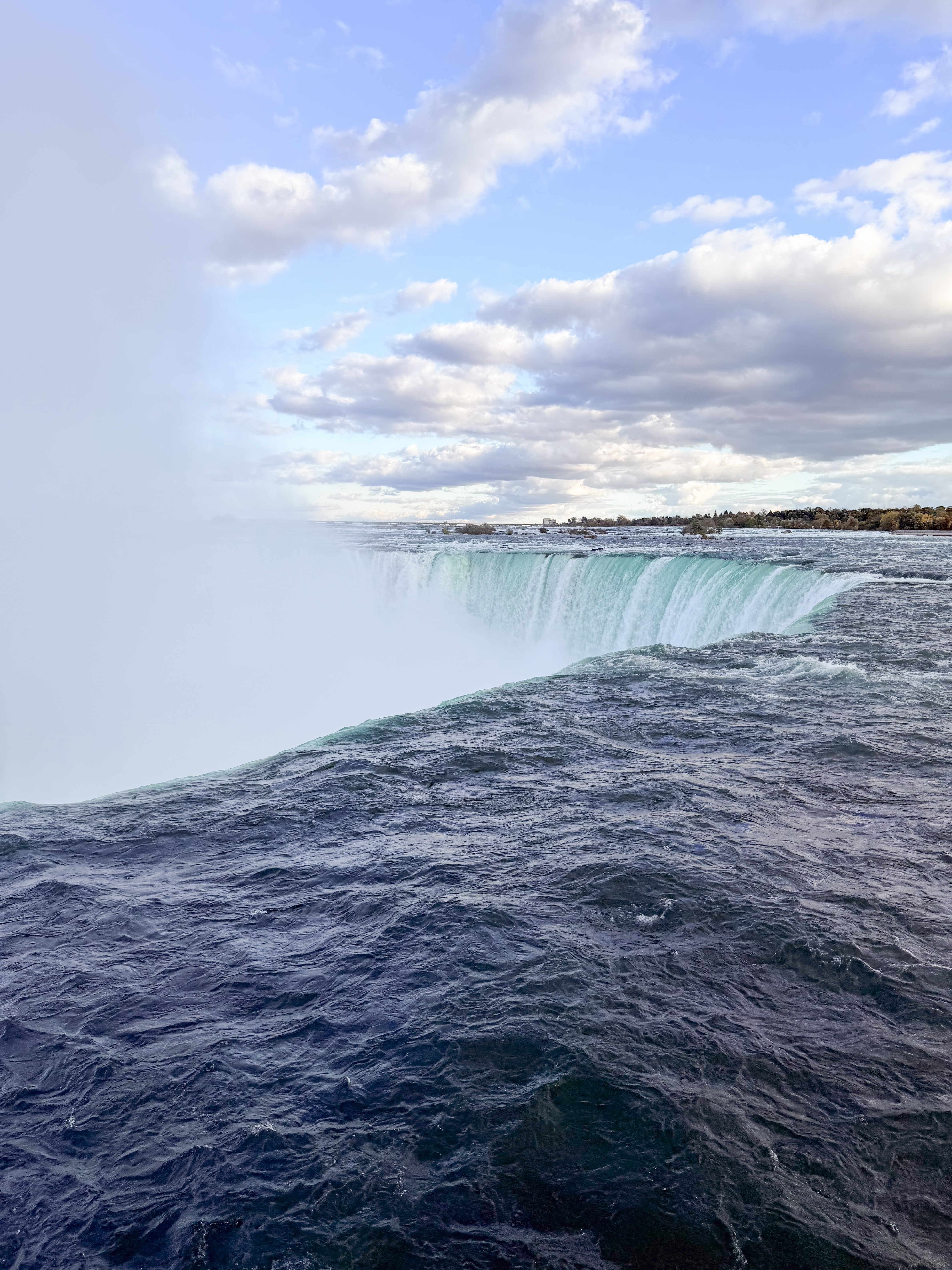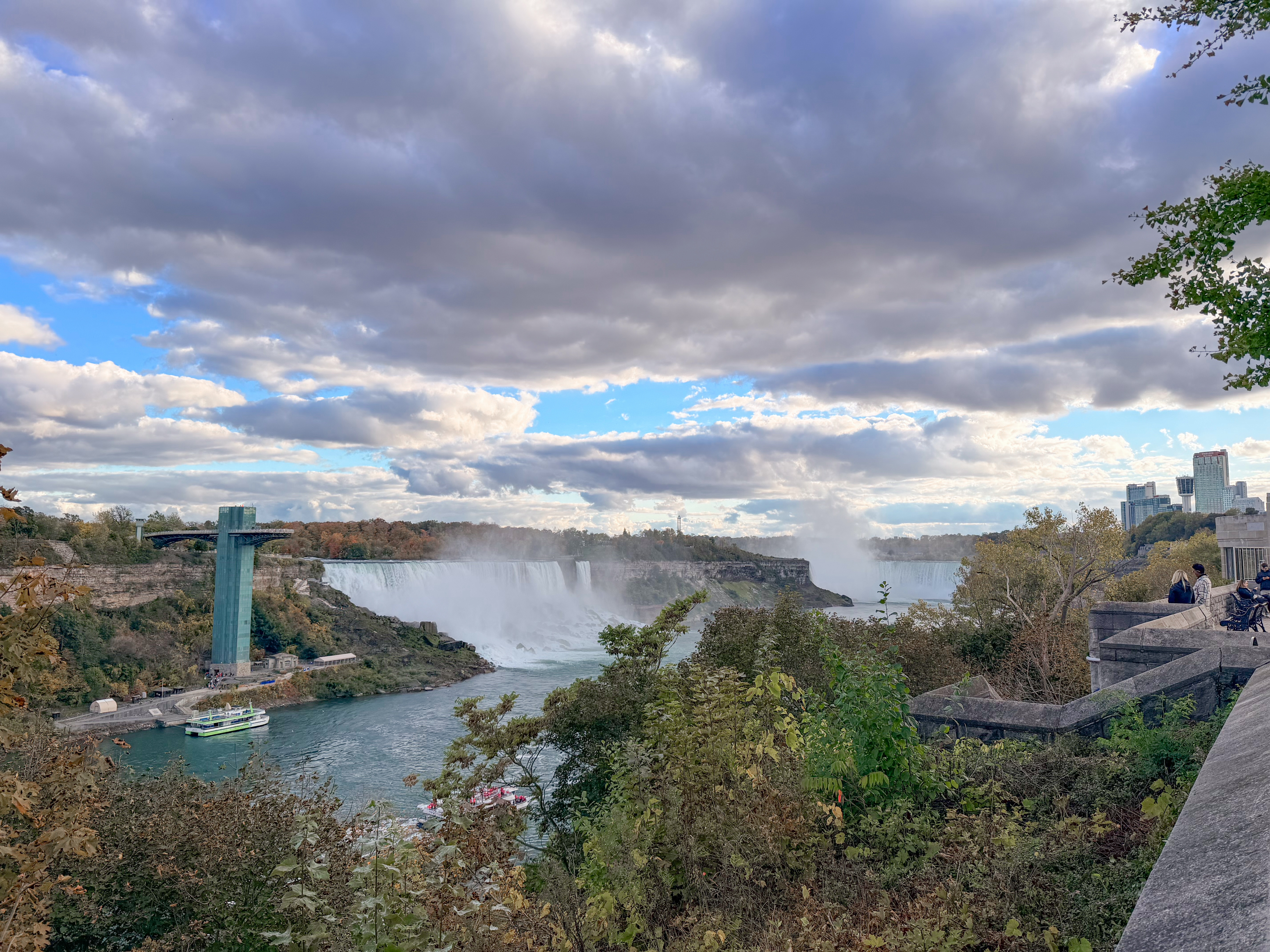 Since we were an hour and a half from Niagara Falls, we decided to visit, knowing that this iconic destination was a highlight of the area. There was rain in the morning, casting a gloomy atmosphere, and since it was in the forecast for other days, we felt this might be our only chance to experience the falls during our trip. After our visit to Cutco Cutlery, where we enjoyed learning about their products and craftsmanship, we set out on a scenic drive filled with anticipation. The landscape was beautiful, and we were delighted to cross the border to view Niagara Falls from the Canadian side, renowned for its breathtaking views. Upon arriving, we found a perfect parking spot, which was a stroke of luck considering how busy the area can get. I quickly made my way to the edge of the falls, feeling the mist on my face and the excitement building as I aimed my camera to capture the stunning visuals. To my delight, there was a vibrant rainbow arcing across the spray of the falls, which made the moment even more magical and memorable. I loved seeing it, as it seemed to embody the beauty and raw power of nature right before me.