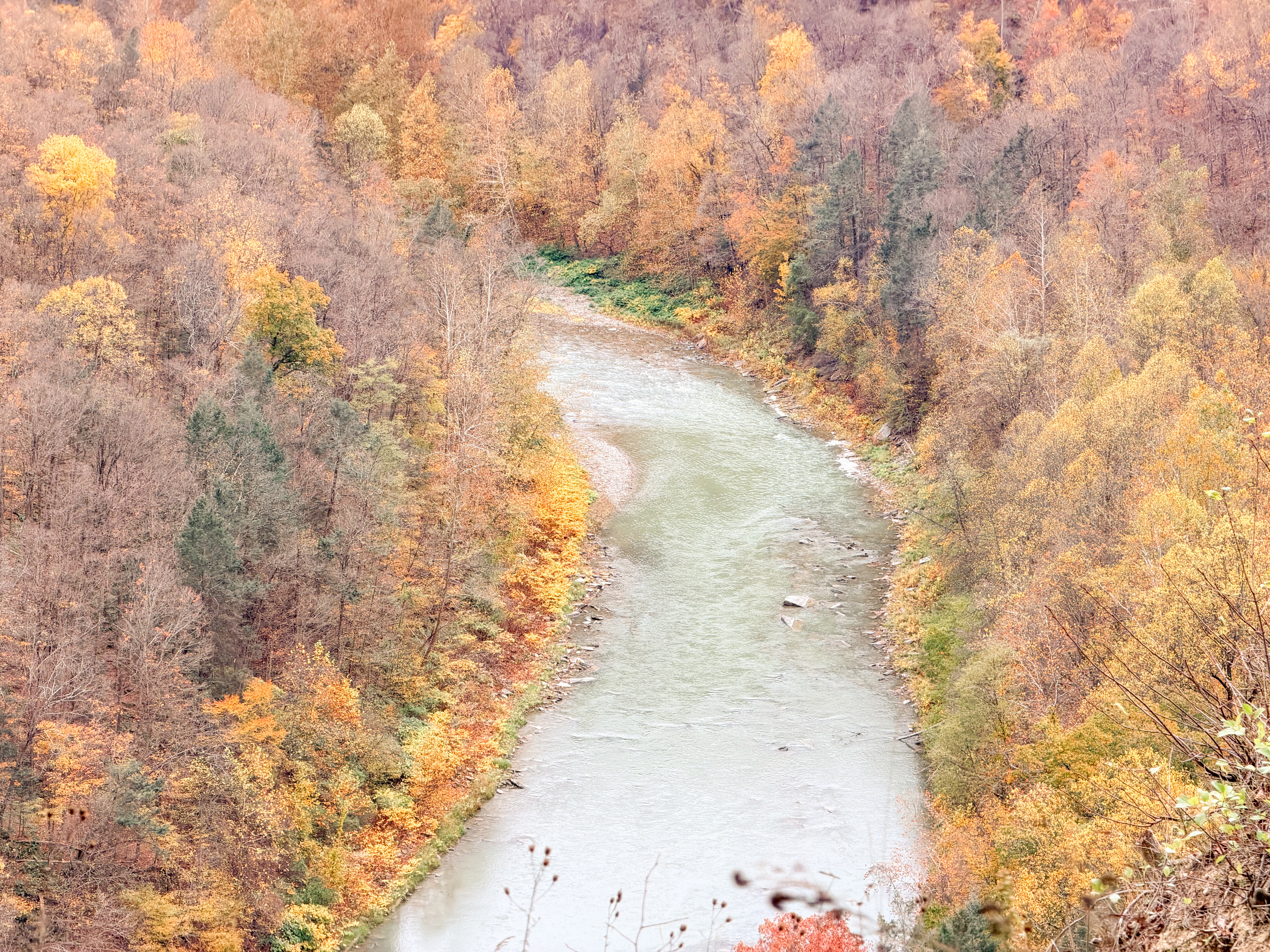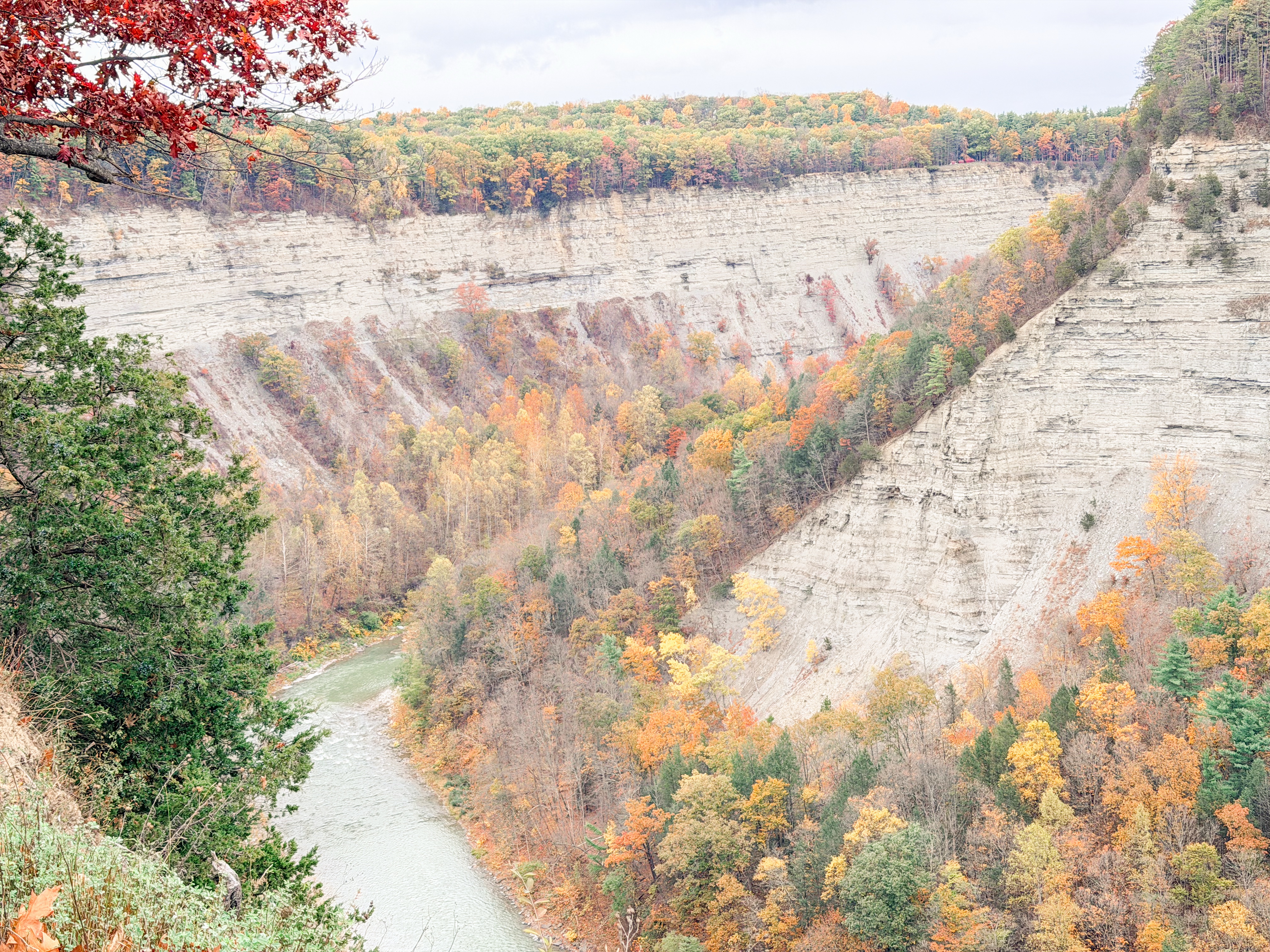 There were great areas to pull off and view the Genesee River, allowing visitors to soak in the breathtaking scenery. The park has earned the nickname “Grand Canyon” of the East, and it’s easy to see where it gets its name, as the steep, dramatic gorges create stunning vistas that resemble the iconic canyon. The views, with their magnificent rock faces carved over eons, mixed with the lush greenery of the surrounding forests, offer a beautiful contrast that captivates the eye and invites exploration. As the sunlight filters through the trees, shimmering reflections dance on the river’s surface, enhancing the overall picturesque experience that this natural wonder provides.